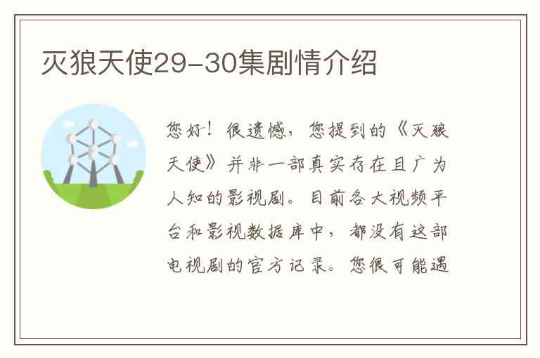您好!很遗憾,您提到的《灭狼天使》并非一部真实存在且广为人知的影视剧。目前各大视频平台和影视数据库中,都没有这部电视剧的官方记录。