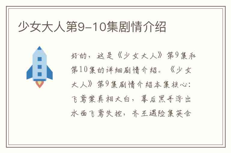 好的,这是《少女大人》第9集和第10集的详细剧情介绍。