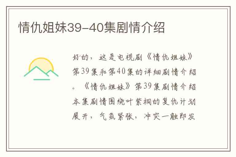 好的,这是电视剧《情仇姐妹》第39集和第40集的详细剧情介绍。