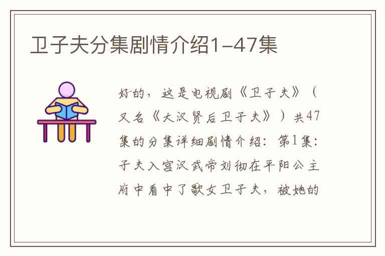 好的,这是电视剧《卫子夫》(又名《大汉贤后卫子夫》)共47集的分集详细剧情介绍:
