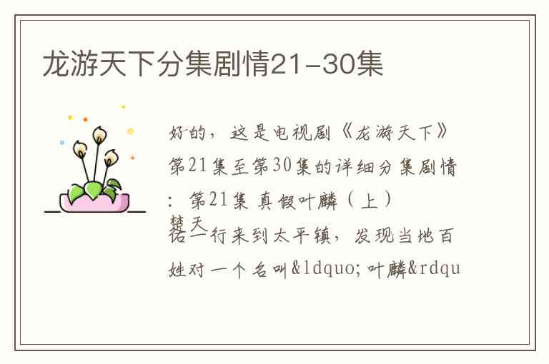 好的,这是电视剧《龙游天下》第21集至第30集的详细分集剧情: