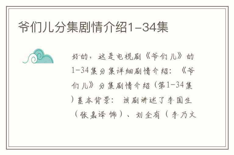 好的,这是电视剧《爷们儿》的1-34集分集详细剧情介绍: