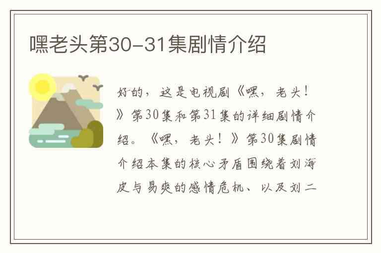 好的,这是电视剧《嘿,老头!》第30集和第31集的详细剧情介绍。