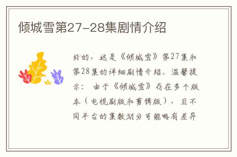 好的,这是《倾城雪》第27集和第28集的详细剧情介绍。