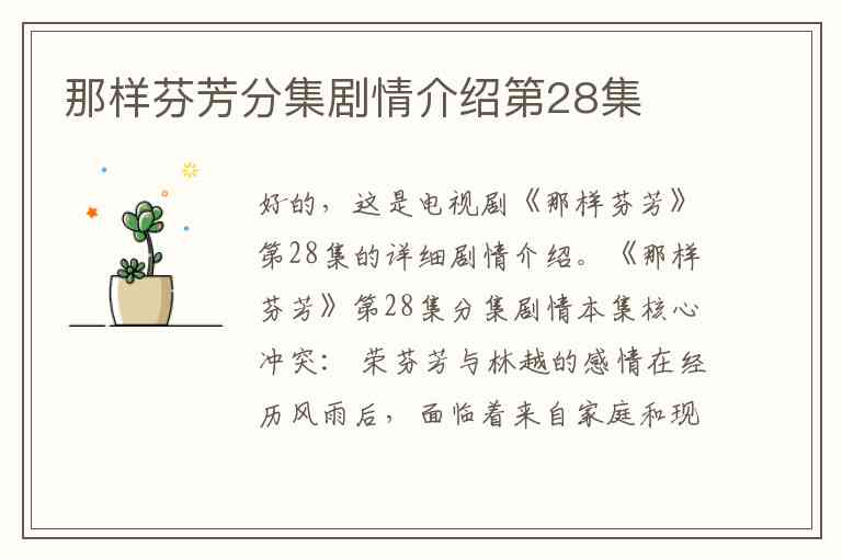 好的,这是电视剧《那样芬芳》第28集的详细剧情介绍。