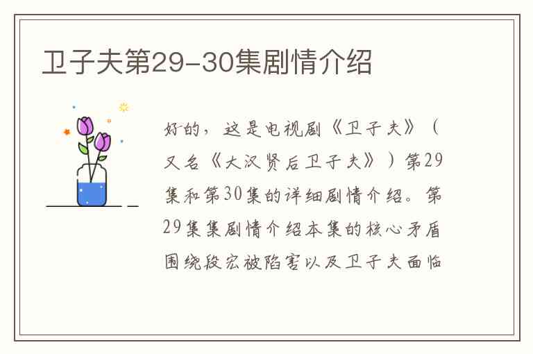 好的,这是电视剧《卫子夫》(又名《大汉贤后卫子夫》)第29集和第30集的详细剧情介绍。