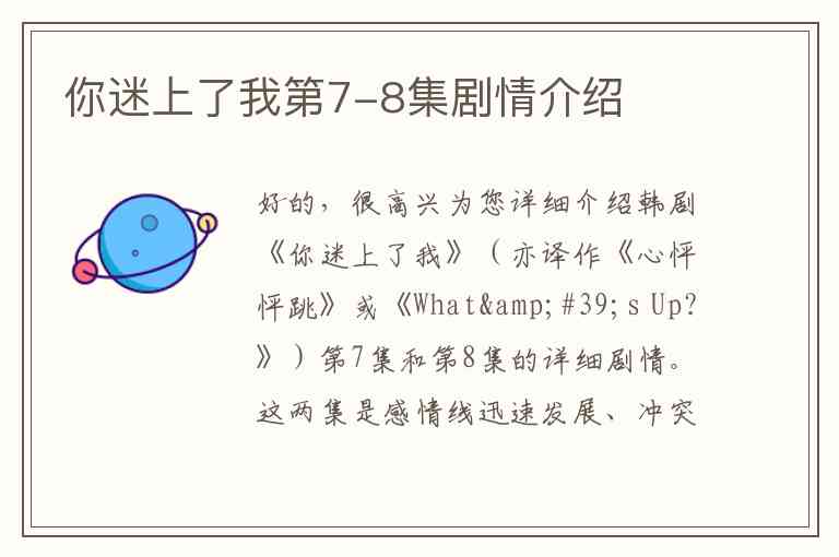 好的,很高兴为您详细介绍韩剧《你迷上了我》(亦译作《心怦怦跳》或《What's Up?》)第7集和第8集的详细剧情。