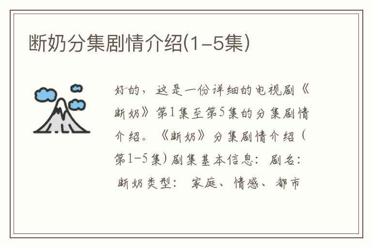 好的,这是一份详细的电视剧《断奶》第1集至第5集的分集剧情介绍。