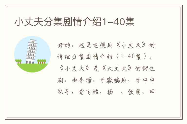 好的,这是电视剧《小丈夫》的详细分集剧情介绍(1-40集)。