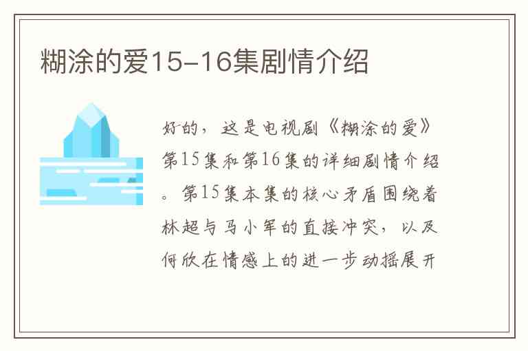 好的,这是电视剧《糊涂的爱》第15集和第16集的详细剧情介绍。