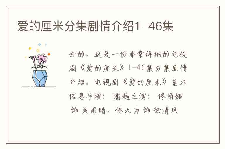 好的,这是一份非常详细的电视剧《爱的厘米》1-46集分集剧情介绍。