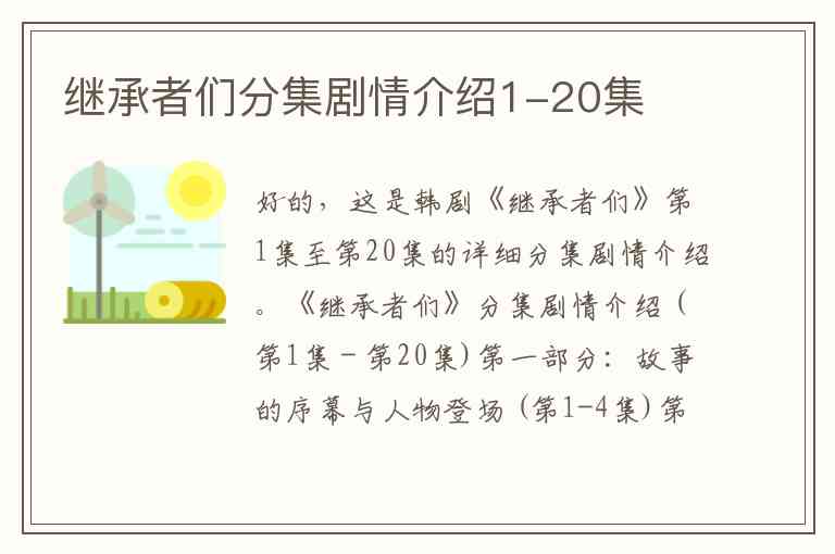 希望这份详细的分集剧情能帮助您更好地回顾《继承者们》的精彩故事!