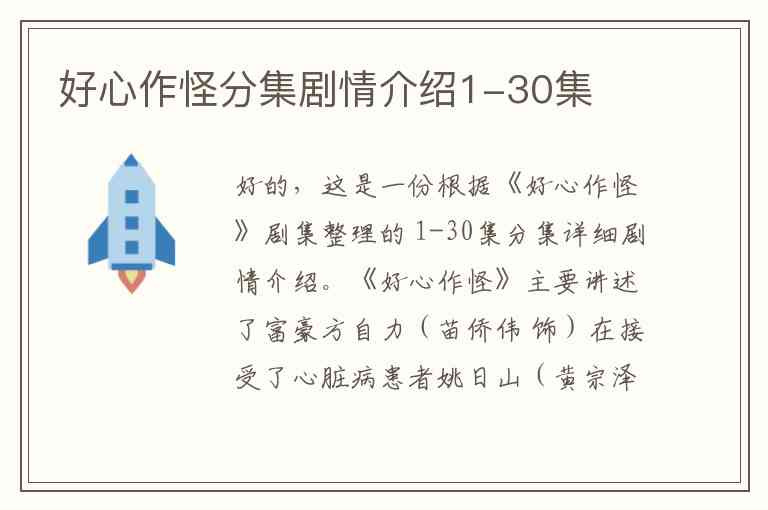 好的,这是一份根据《好心作怪》剧集整理的 1-30集分集详细剧情介绍。