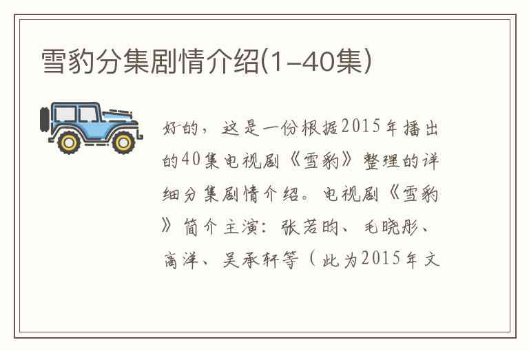 好的,这是一份根据2015年播出的40集电视剧《雪豹》整理的详细分集剧情介绍。