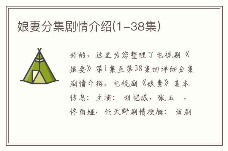 好的,这里为您整理了电视剧《娘妻》第1集至第38集的详细分集剧情介绍。