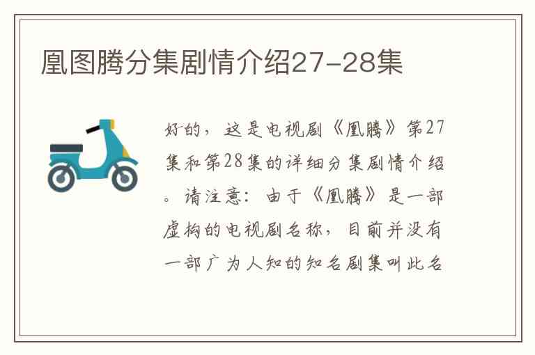 好的,这是电视剧《凰腾》第27集和第28集的详细分集剧情介绍。
