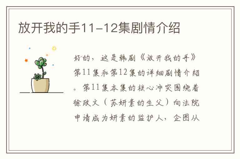 好的,这是韩剧《放开我的手》第11集和第12集的详细剧情介绍。