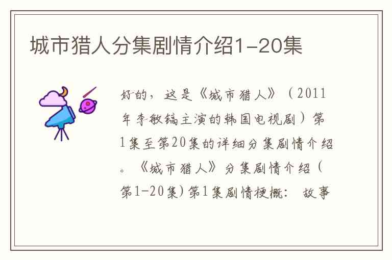 好的,这是《城市猎人》(2011年李敏镐主演的韩国电视剧)第1集至第20集的详细分集剧情介绍。