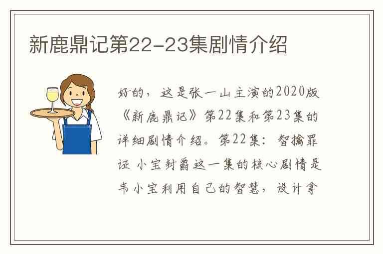 好的,这是张一山主演的2020版《新鹿鼎记》第22集和第23集的详细剧情介绍。