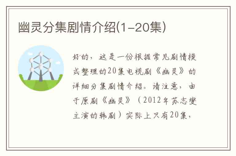 好的,这是一份根据常见剧情模式整理的20集电视剧《幽灵》的详细分集剧情介绍。请注意,由于原剧《幽灵》(2012年苏志燮主演的韩剧)实际上只有20集,且情节紧凑,以下内容是基于该剧主线情节的拆分和细化,以便于理解每一集的戏剧冲突和发展。