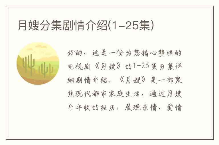 好的,这是一份为您精心整理的电视剧《月嫂》的1-25集分集详细剧情介绍。