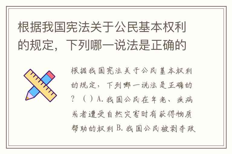 根据我国宪法关于公民基本权利的规定,下列哪一说法是正确的?()A.我国公民在年老、疾病或者遭受自然灾害时有获得物质帮助的权利 B.我国公民被剥夺政治权利的,其出版自由也被剥夺 C.我国公民有信仰宗教与公开传教的自由 D.我国公民有任意休息的权利