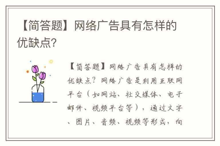 【简答题】网络广告具有怎样的优缺点?