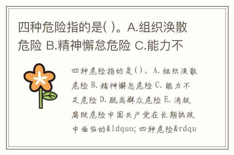 四种危险指的是( )。A.组织涣散危险 B.精神懈怠危险 C.能力不足危险 D.脱离群众危险 E.消极腐败危险