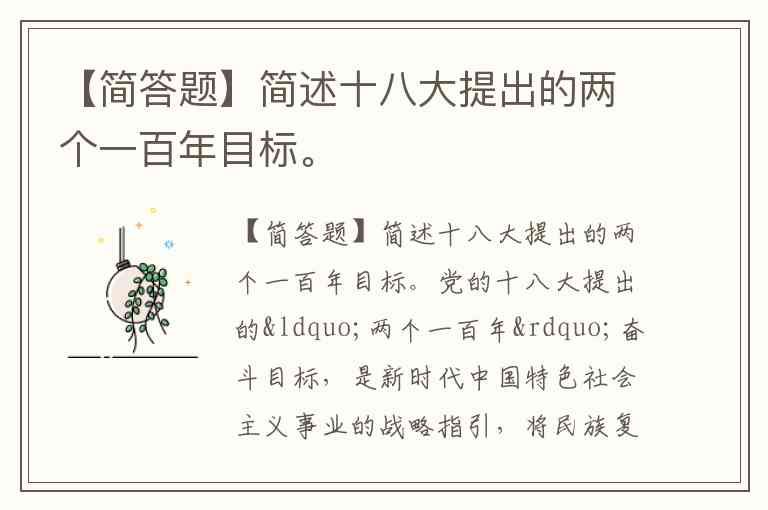 党的十八大提出的“两个一百年”奋斗目标,是新时代中国特色社会主义事业的战略指引,将民族复兴愿景转化为具体历史坐标。第一个目标聚焦2021年中国共产党成立百年之际,要求全面建成小康社会,实现国内生产总值和城乡居民人均收入比2010年翻一番。这一目标已在2021年由习近平总书记庄严宣告如期实现,标志着中国历史性解决了绝对贫困问题,建成了经济发展、民主健全、科教进步、文化繁荣、社会和谐、人民生活殷实的小康社会。