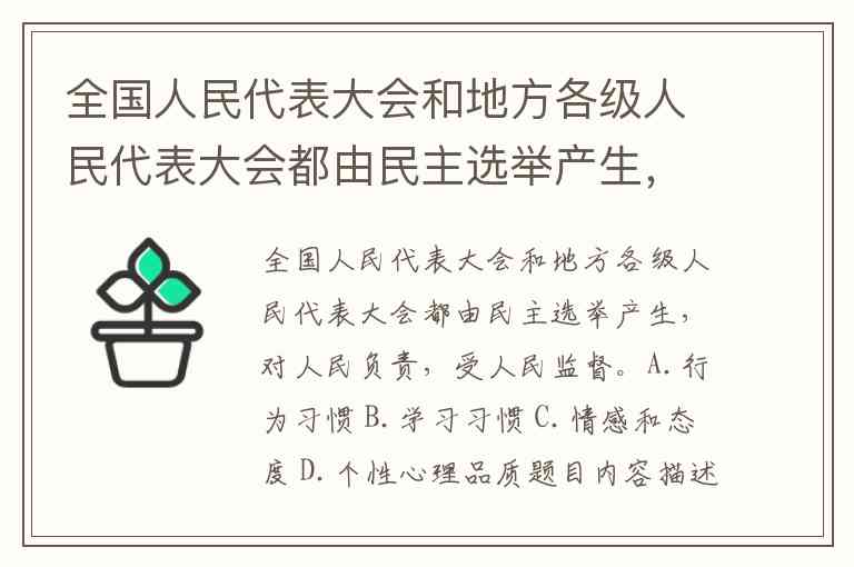 全国人民代表大会和地方各级人民代表大会都由民主选举产生,对人民负责,受人民监督。A.行为习惯 B.学习习惯 C.情感和态度 D.个性心理品质