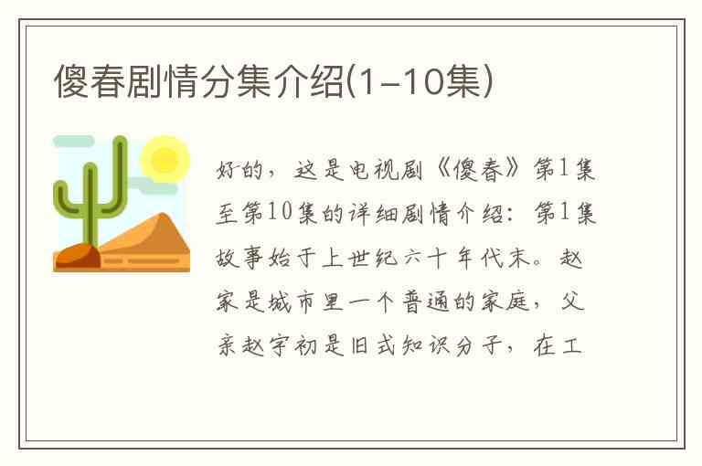 以上是《傻春》前10集的主要剧情梗概,这部剧通过细腻的生活场景,生动地刻画了傻春这个角色,展现了上世纪六七十年代一个中国普通家庭的变迁与亲情。