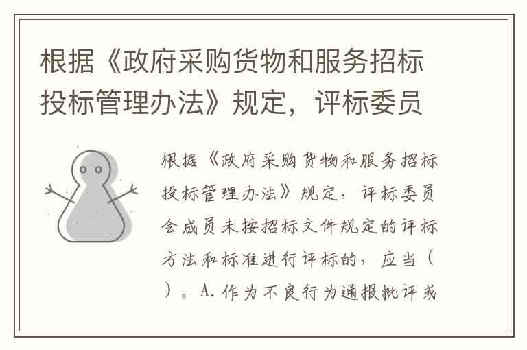 根据《政府采购货物和服务招标投标管理办法》规定,评标委员会成员未按招标文件规定的评标方法和标准进行评标的,应当()。A.作为不良行为通报批评或记录 B.责令改正,给予警告,可以并处一千元以下的罚款 C.取消评审专家资格 D.取消其一年以上评审资格,并在财政部门指定的政府采购信息发布媒体上予以公告