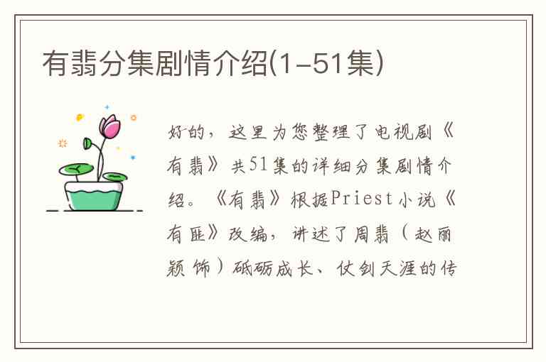 好的,这里为您整理了电视剧《有翡》共51集的详细分集剧情介绍。