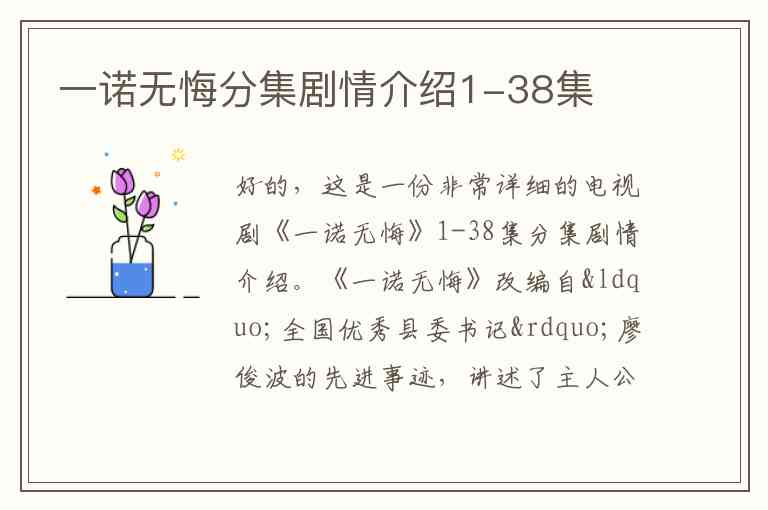 好的,这是一份非常详细的电视剧《一诺无悔》1-38集分集剧情介绍。