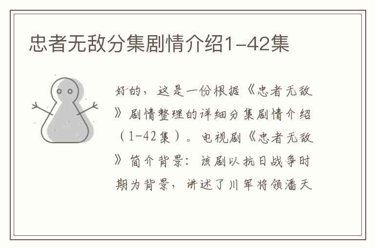 好的,这是一份根据《忠者无敌》剧情整理的详细分集剧情介绍(1-42集)。
