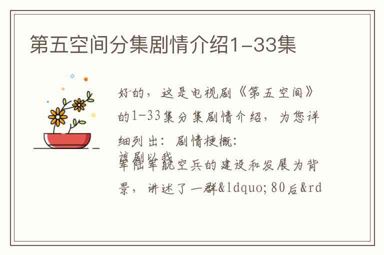 好的,这是电视剧《第五空间》的1-33集分集剧情介绍,为您详细列出: