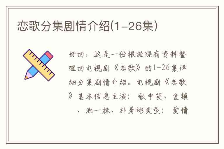 好的,这是一份根据现有资料整理的电视剧《恋歌》的1-26集详细分集剧情介绍。