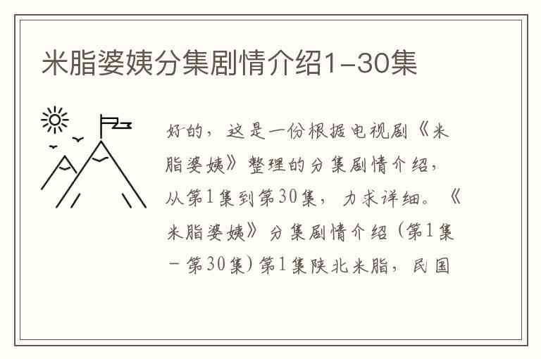 好的,这是一份根据电视剧《米脂婆姨》整理的分集剧情介绍,从第1集到第30集,力求详细。