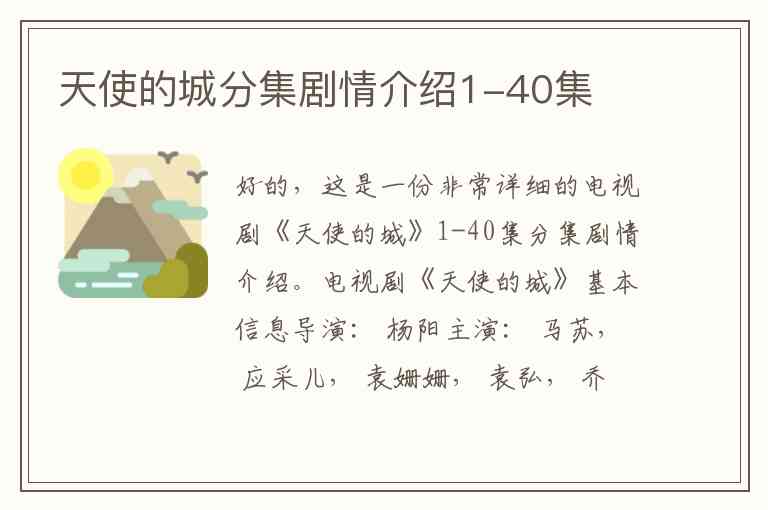 好的,这是一份非常详细的电视剧《天使的城》1-40集分集剧情介绍。
