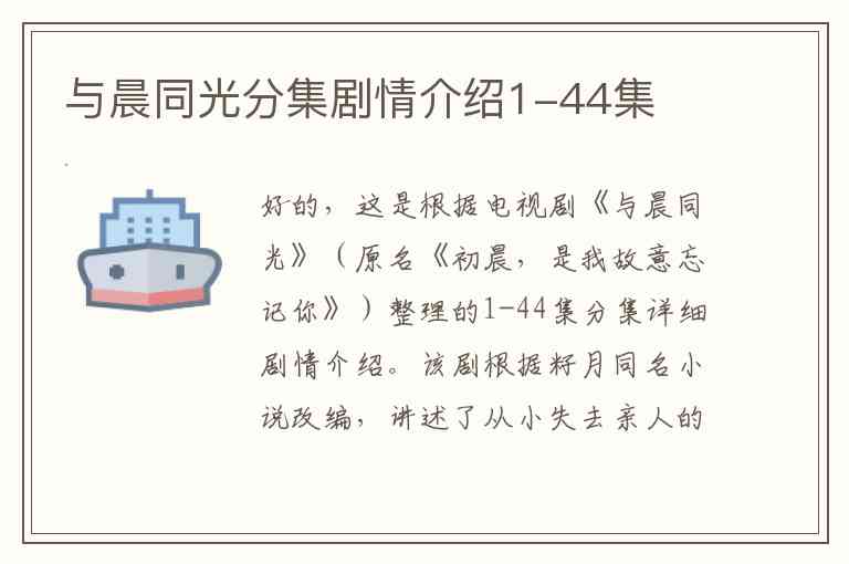 好的,这是根据电视剧《与晨同光》(原名《初晨,是我故意忘记你》)整理的1-44集分集详细剧情介绍。