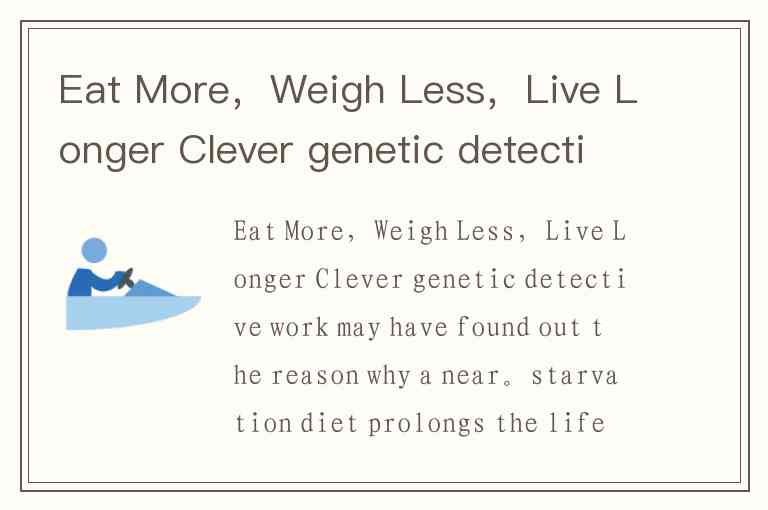 Eat More,Weigh Less,Live Longer Clever genetic detective work may have found out the reason why a near。starvation diet prolongs the life of many animals. Ronald Kahn at Harvard Medical School in Boston,US,and his colleagues have been able to extend the lifespan(寿命)of mice by 18 per cent by blocking the rodent’s(啮齿动物) increase of fat in specific cells.This suggests that thinness--and hot necessarily diet—-promotes long life in “ calerie (热量卡) restricted” animals. “It’s very cool work.”says aging researcher Cynthia Kenyon of the University of California,San Francisco.“These mice eat all they want,lose weight and live longer.It’s like heaven.” Calorie restriction dramatically extends the lifespan of organisms as different as worms and rodents.Whether this works in humans is still unknown,partly because few people are willing to submit to such a strict diet. But many researchers hope they will be able to trigger the same effect with a drug once they understand how less food leads to a longer life.One theory is that eating less reduces the increase of harmful things that can damage cells.But Kahn’s team wondered whether the animals simply benefit by becoming thin. To find out。they used biology tricks to disrupt the insulin(胰岛素)receptor(受体)gene in lab mice—_but only in their fat cells.“Since insulin is needed to help fat cells store fat,these animals were protected against becoming fat,”explains Kahn. This slight genetic change in a single tissue had dramatic effects.By three months of age,Kahn,s modified mice had up to 70 per cent less body fat than normal control mice,despite the fact that they ate 55per cent more food per gram of body weight. In addition,their lifespan increased.The average control mouse lived 753 days,while the thin rodents averaged a lifespan of 887 days.After three years,all the control mice had died,but one--quarter of the modified rodents were still alive. “That they get these effects by just manipulating t11e fat cells is controversial,”says Leonard Guarente of the Massachusetts Institute of Technology, who studies calorie restriction and aging. But Guarente says Kahn has yet to prove that the same effect is responsible for increased lifespan in calorie.restricted animals.“It might be the same effect or there might be two routes to long life,”he points out,“and that would be very interesting.” 第11题:Ronald Kahn and his colleagues can make mice live longer byA. Ronald B.This C. “It’s D.”says E.“These F.It’s G.” Calorie H.Whether I. But J.One K.But L. To M.“Since N. This O.By P. In Q.The R.After S. “That T. But U.restricted V.“It W.” 第11题:Ronald X.offering Y. B.giving Z. C.disrupting [. D.preventing