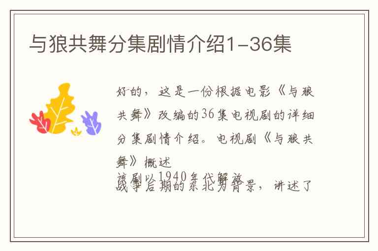 好的,这是一份根据电影《与狼共舞》改编的36集电视剧的详细分集剧情介绍。