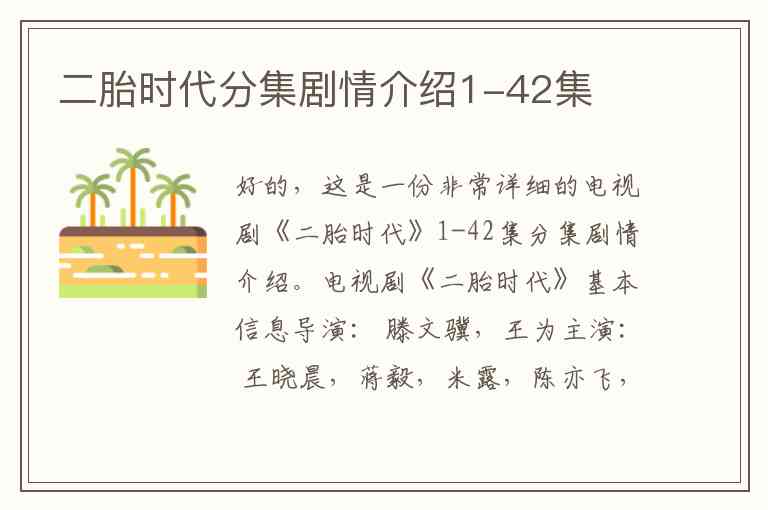 好的,这是一份非常详细的电视剧《二胎时代》1-42集分集剧情介绍。