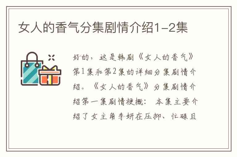 好的,这是韩剧《女人的香气》第1集和第2集的详细分集剧情介绍。