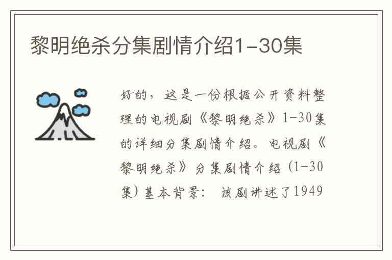 好的,这是一份根据公开资料整理的电视剧《黎明绝杀》1-30集的详细分集剧情介绍。
