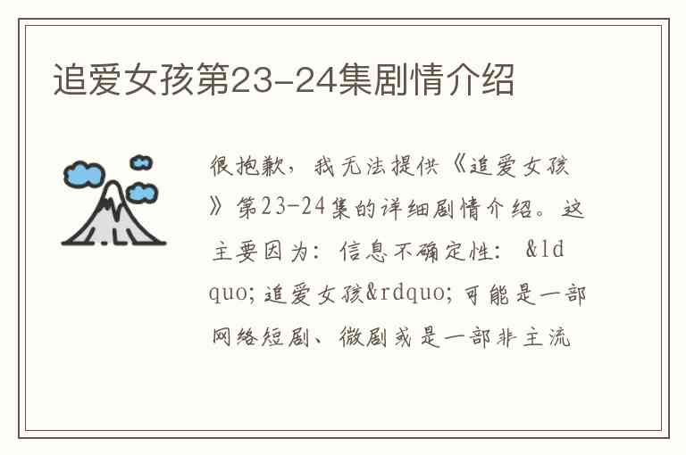 很抱歉,我无法提供《追爱女孩》第23-24集的详细剧情介绍。这主要因为: