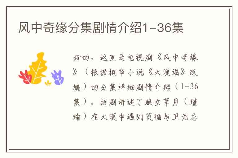 好的,这里是电视剧《风中奇缘》(根据桐华小说《大漠谣》改编)的分集详细剧情介绍(1-36集)。