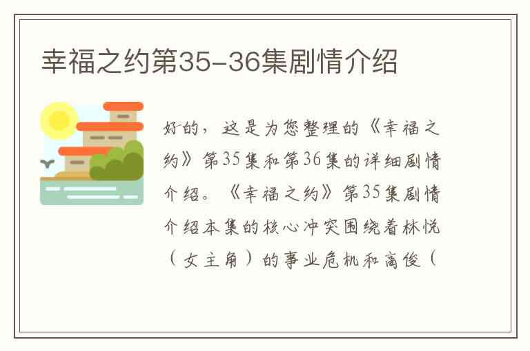 好的,这是为您整理的《幸福之约》第35集和第36集的详细剧情介绍。