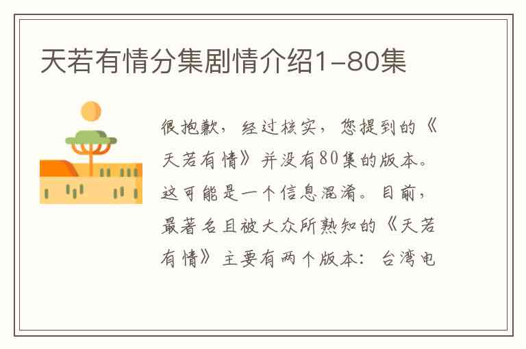 很抱歉,经过核实,您提到的《天若有情》并没有80集的版本。这可能是一个信息混淆。