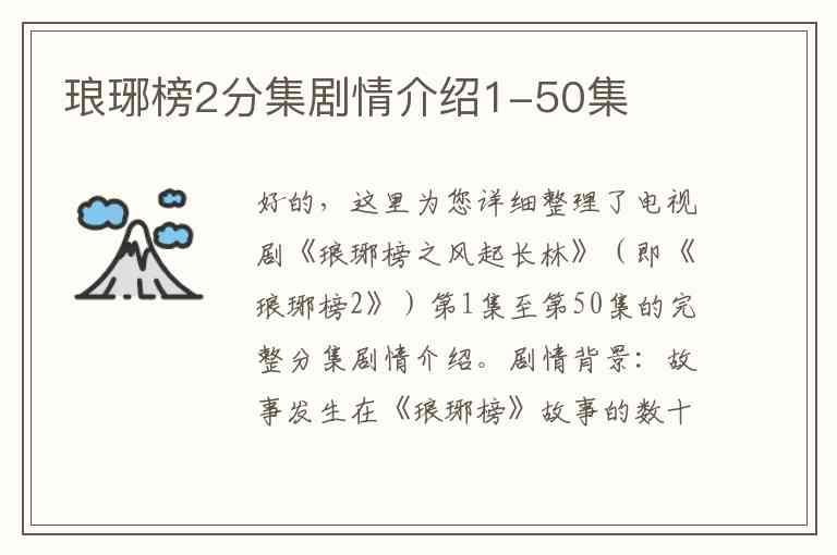 好的,这里为您详细整理了电视剧《琅琊榜之风起长林》(即《琅琊榜2》)第1集至第50集的完整分集剧情介绍。
